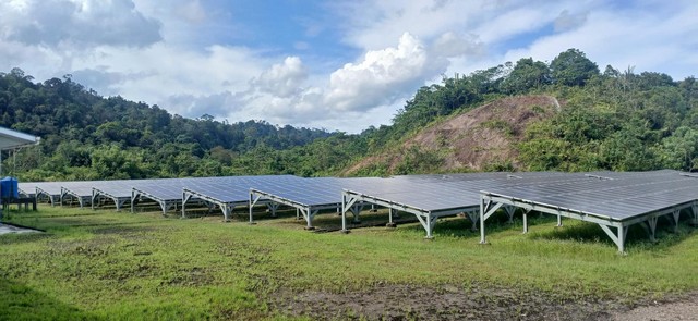 Sistem solar hibrid ini menggunakan 70% kuasa solar dan bateri dengan baki 30% adalah daripada penjana diesel sandaran.